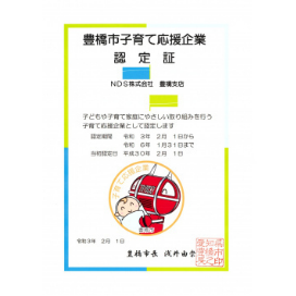 豊橋市 子育て応援企業認定証