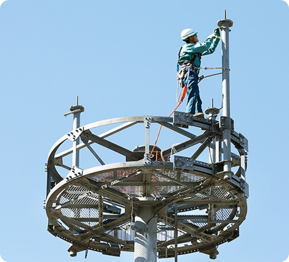 各通信キャリア様のパートナーとして、先端技術と実績に基づく機器選定・設計、厳選な品質管理体制で、高速かつ安定したモバイル通信設備を実現しています