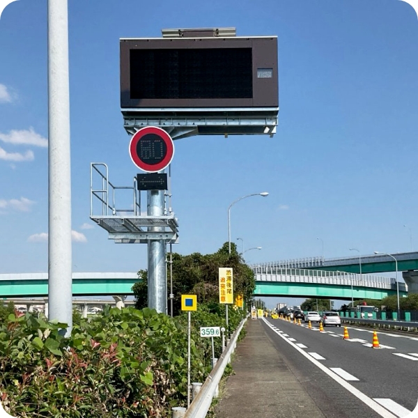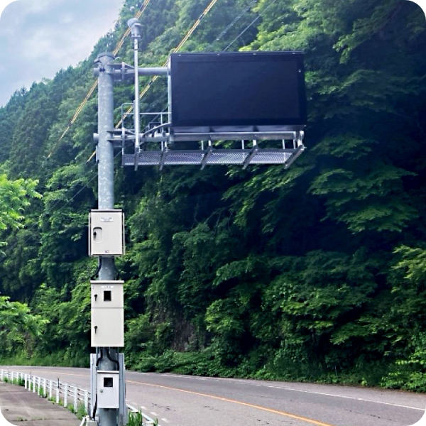 高速道路や一般道路等で交通状況や工事予告などを告知する掲示板を設置しています。求められる高い仕様、技術水準に応え、設置から保守まで一貫して実施します。