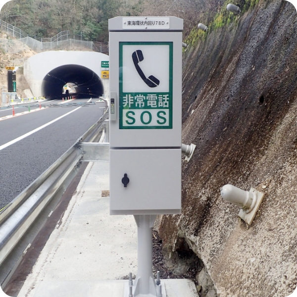 高速道路に設置されている非常電話設備を設置しています。長く、電話の設備工事に携わってきた技術を活かして高品質な工事を実施しています。