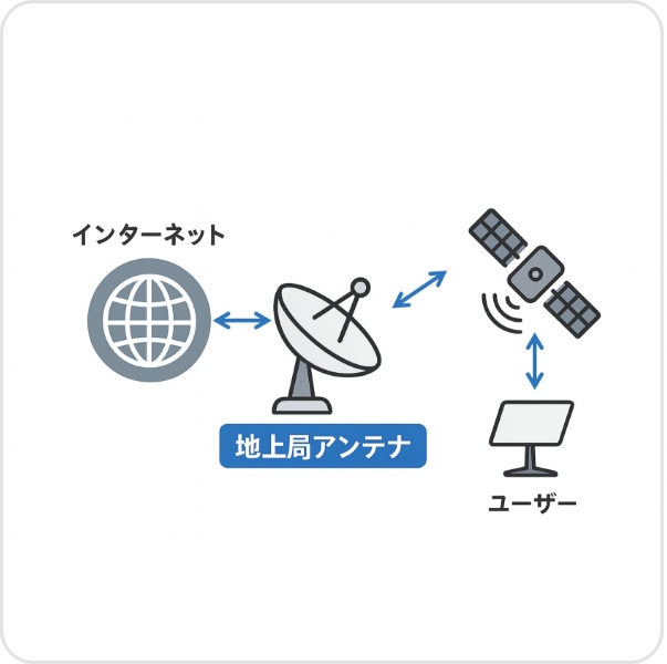 衛星と地球上のインターネット回線をつなぐ地上局アンテナ設備。アンテナ設備・電源設備等の施工を行い、衛星との安定した送受信環境を構築します。